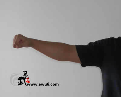 刚开始可不握拳,双臂双手完全放松,以腰胯部拧转的力量将推动双手直线向前击出,